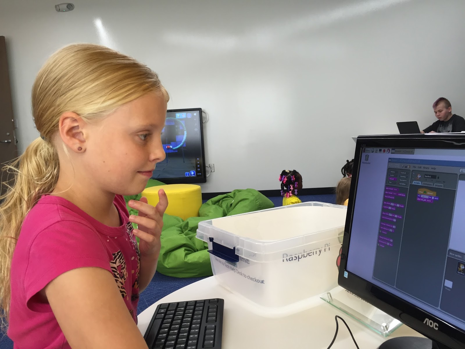 Awake once more, here's our Talia learning some computer code using Raspberry Pi.