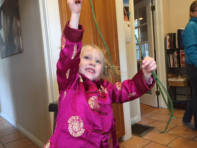 Cook: Cook, cook, boy did we cook! We postponed our Valentine tradition of Cupid's Crazy Cafe for a couple of days so that Alesia could join in the fun. Our celebration happened to land on the Lunar New Year, so we feasted on all things Asian. The good news is that our red decor was perfect for both festivities.