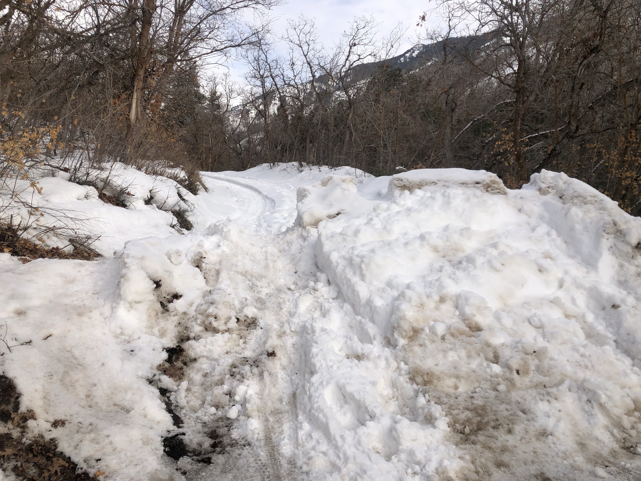When biking up City Creek a few days later, the trail was dry until I got to the spot where they stopped plowing. Then I had no choice but to turn back!