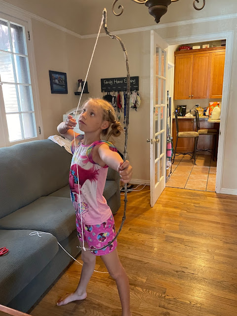 While not as silly as swigging bubble solution, Annika's homemade bow cracks me up too. I'm pretty sure she was inspired by Avatar.